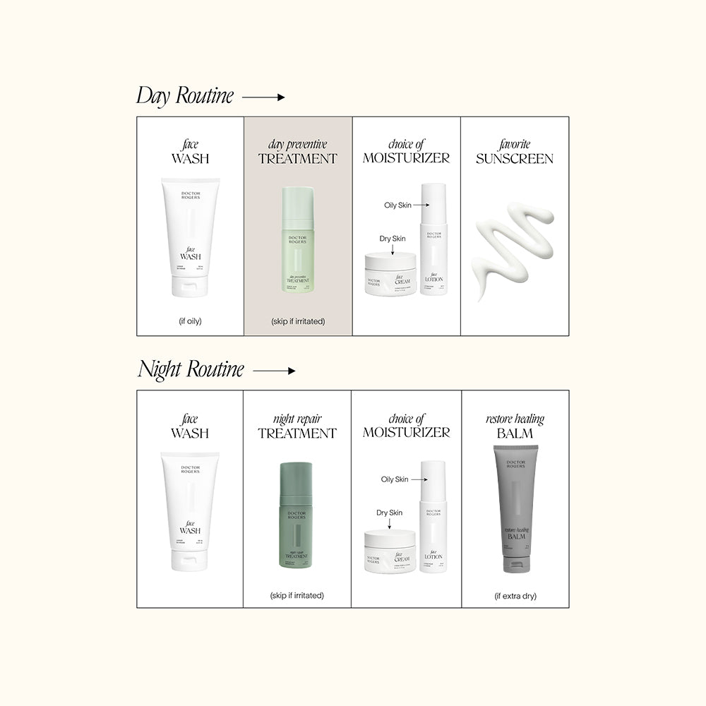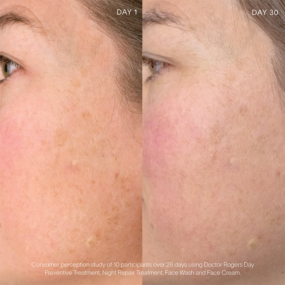- In the morning, apply to clean, bare skin to the face, neck, chest, and back of hands.